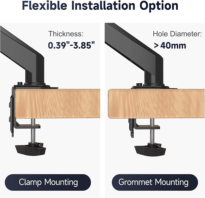 - Two install options - C-clamp and optional grommet base save your valuable desk space.Step-by-step user manual and organized hardware kit for hassle free mounting.If you have any problems during the installation process or product selection,you can contact our customer service team in a timely manner.