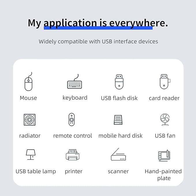 - 【Widely Compatible】This multi usb port is compatible with Windows, Vista, XP, Mac OS, Linux, Chrome OS and more. This usb port extender is suitable for keyboard, mouse, USB Bluetooth adapter, USB flash drive, hard disk, USB flash drive, HDD and other devices