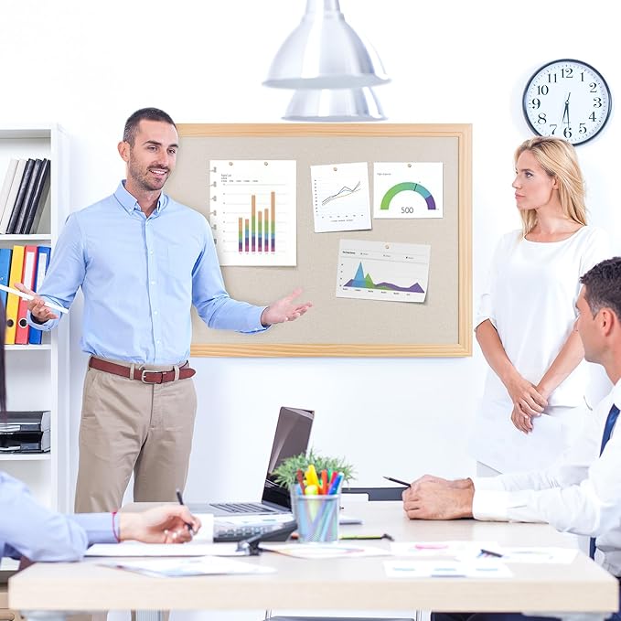 - Premium Solid Wood Frame: Cork board with a solid wood frame measuring 1.38" in width. This sturdy construction ensures durability and longevity, providing a reliable display solution for your photos, notes, and reminders. Its elegant design adds a touch of sophistication to any space, making it a versatile and stylish addition to your home or office decor.
