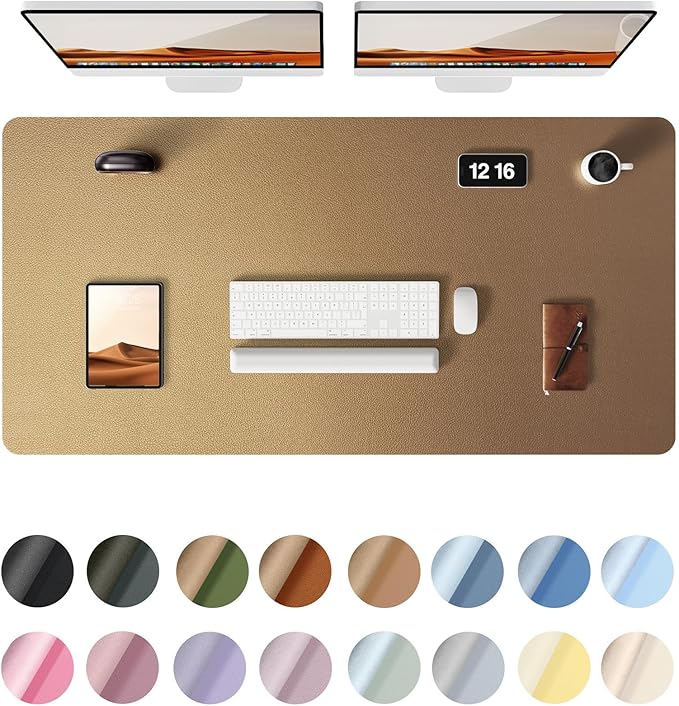 - DESK PROTECTOR: Durable PU Leather material adapted, which can protect your desk from scratches, stains, spills, heat and scuffs. Multi-color provided, change your mode by change the working atmosphere. Surface can be used as a large mouse pad, comfortable resting surface for your hands while writing, typing, and using the mouse. A must have office or study supplies.