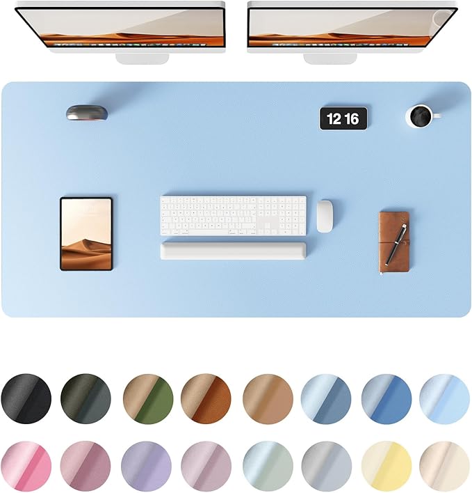 - DESK PROTECTOR: Durable PU Leather material adapted, which can protect your desk from scratches, stains, spills, heat and scuffs. Multi-color provided, change your mode by change the working atmosphere. Surface can be used as a large mouse pad, comfortable resting surface for your hands while writing, typing, and using the mouse. A must have office or study supplies.