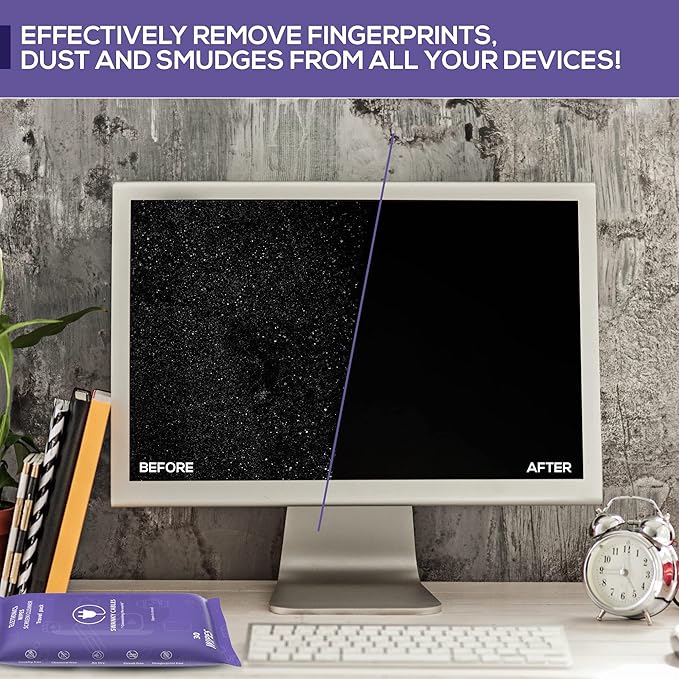- EASY TO USE - Designed for convenience, these pre-moistened wipes are ready to use immediately. Simply wipe your device's screen or surface for an instant clean. Use the included microfiber cloth for a final polish to remove any remaining streaks or smudges.