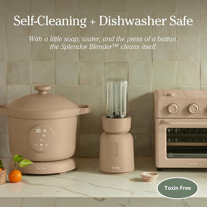 Our Place Splendor Blender - 1000W High-Power | Ultra-Sharp Blades | 2 Blending Modes | Includes 25 oz Personal Cup and Drinking Lid Set | Smoothies, Shakes & More | Blue Salt
