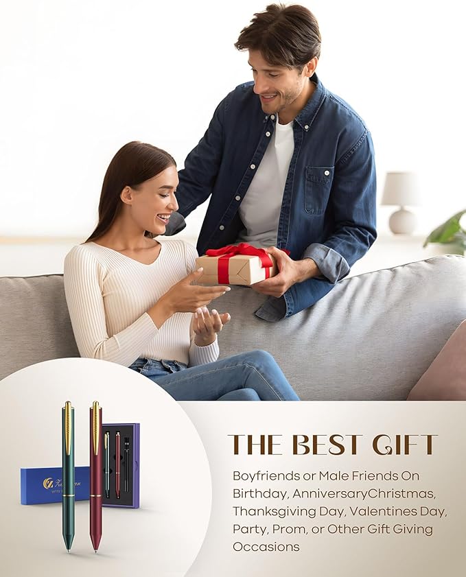 - Exquisite Gift Set: This luxurious nice pen set includes two pens in an elegant gift box, making it an ideal gift for Christmas, graduations, Father's Day, Mother's Day, and birthdays. The brass metal body and pearl sand color scheme showcase high-end quality and understated luxury.