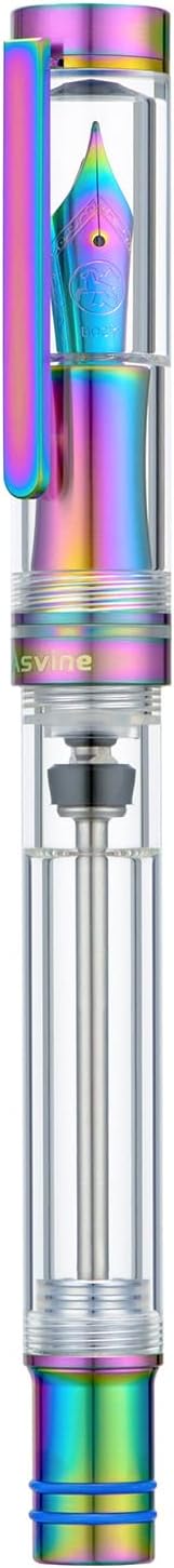 Asvine V200 Titanium Fountain Pen Vacuum Filling, Rainbow Bock Fine Nib Transparent Acrylic Smooth Writing Pen Case Set