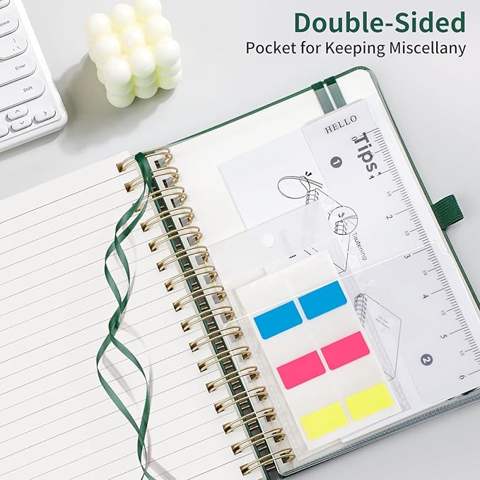- All-Inclusive Design: Includes sticky notes, PVC pocket, removable ruler, pen holder, 2 elastic bands, DIY ribbon bookmark, and rounded safety corners