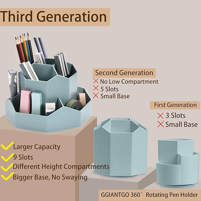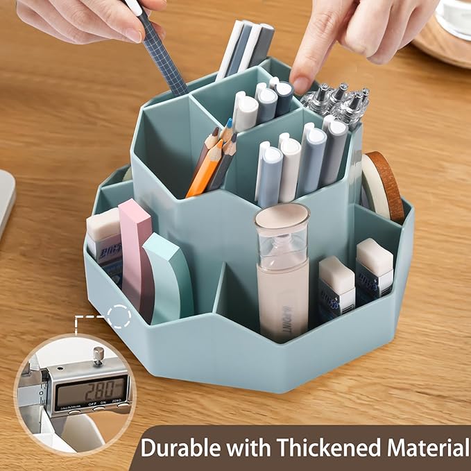 - 【360 Degree Revolving Design】This pen organizer for desk can be turned up to 360-degree rotation. It spins smoothly all around without getting stuck. Easy to access, easy to get from any angle, always keep your desk tidy and organized.
