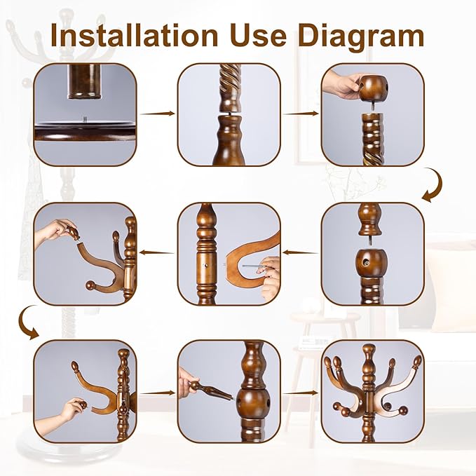 - EFFORTLESS AND QUICK ASSEMBLY: The coat rack comes together effortlessly in mere minutes. Simply tighten the frame poles and hooks with the threaded inserts, and your coat rack is ready to use. No complicated tools required. Save time and effort to enjoy a convenient lifestyle and effortlessly create a stylish home of your own.
