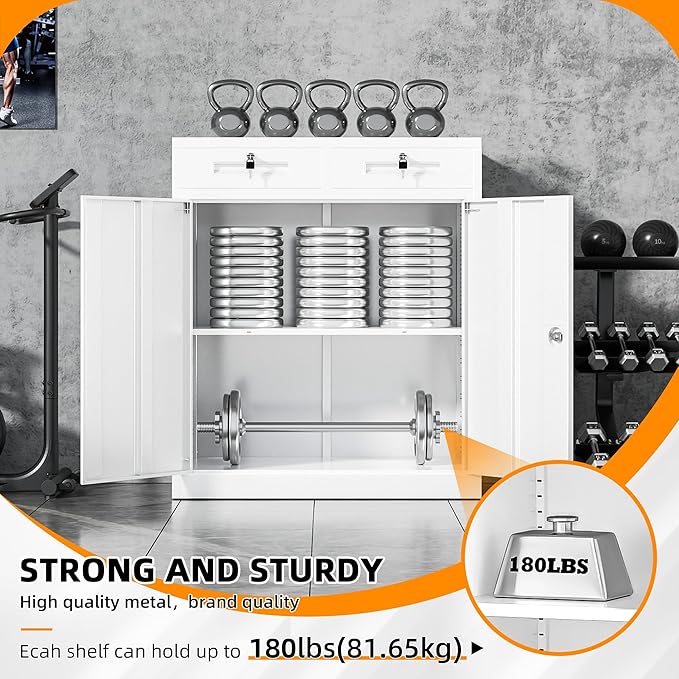 - 【Humanized and Practical Design】The shelves of the office storage cabinet can withstand a weight of 180 LBS, which is suitable for storing some heavy household tools.The size of the tool cabinet is 36"H* 32"W* 16"D, which is suitable no matter where it is placed. The appearance design of the cabinet is very concise and beautiful, with multiple colors and sizes. Durable and beautiful file cabinet have different storage spaces, making it easier for you to access them while working