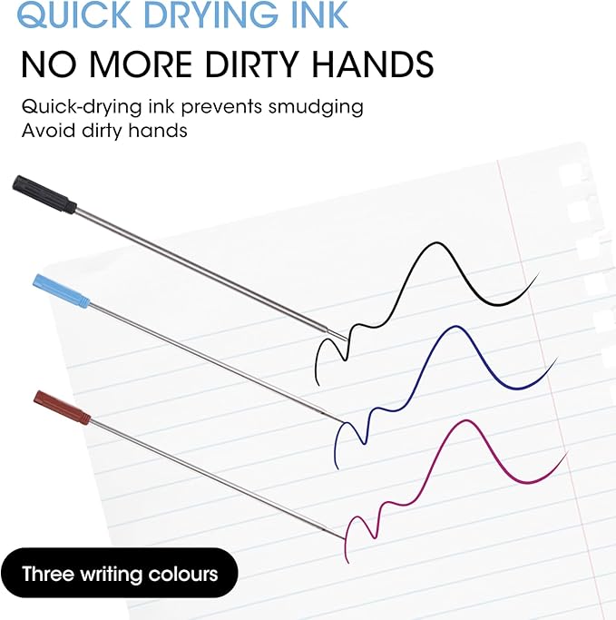 - Long-Lasting Performance: Each refill contains generous ink capacity for extended writing time. The specially sealed tip prevents drying out when not in use, while the smooth-flowing ink formula provides skip-free writing from first use to last drop