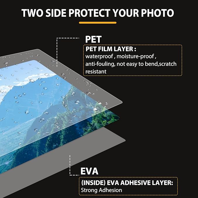 - Application:Perfect for protecting certificates,signs,photos,awards,calendars,kids artworks. It can seal and protect your documents it can be used in classroom, home and office. Compatible with all thermal laminator machine brands. Thermal laminator needed, not self-adhesive