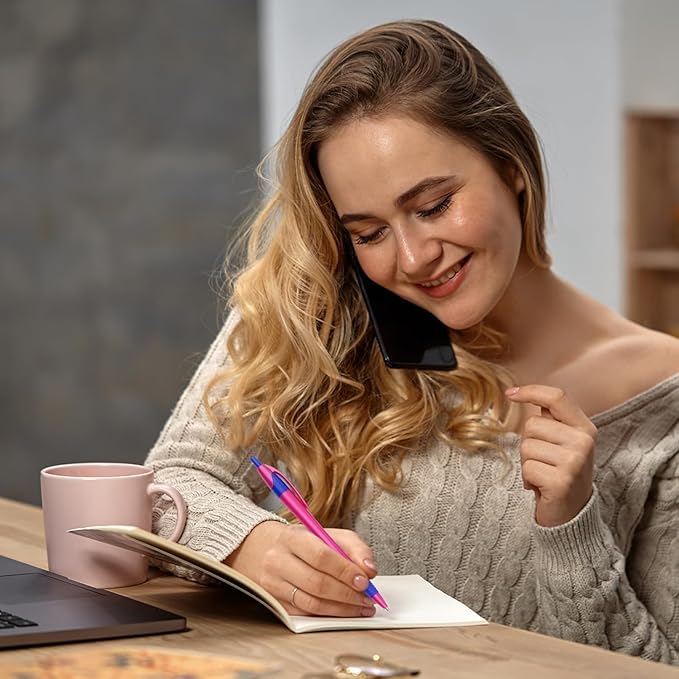 - COMFY: Soft textured rubber grip for comfort. Anti-slip ensures fatigue-free extended use. Retractable design for quick, Easy writing with a click. Click pens bulk