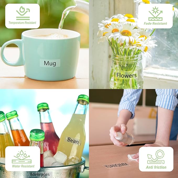 - Width: 1/2 inch (12mm 0.47 inch), Length: 26.2 feet (8m) for each laminated label clear tape. Color: Black on clear