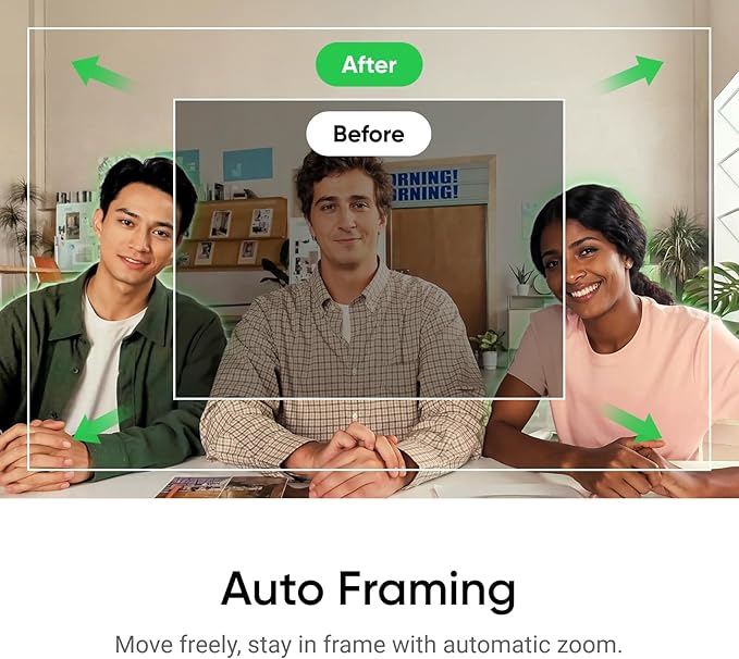 - Auto Framing: Insta360 Link 2C automatically zooms and adjusts to keep everyone clearly in sight, whether it's one person or a group.