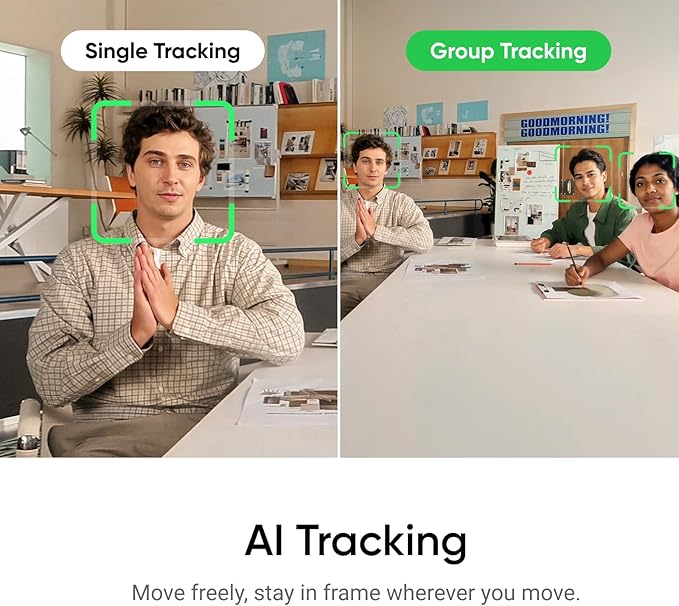 - AI Tracking: Insta360 Link 2 physically pans and tilts to follow your movements around the room, keeping you or your group perfectly in frame.
