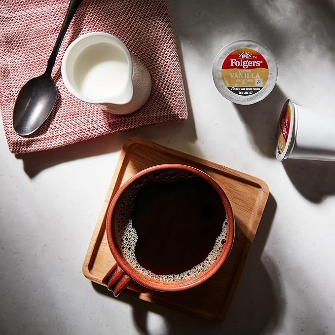 - Contains six (6) 10-count boxes of Folgers French Vanilla Artificially Flavored Coffee K-Cup pods (60 coffee pods total)