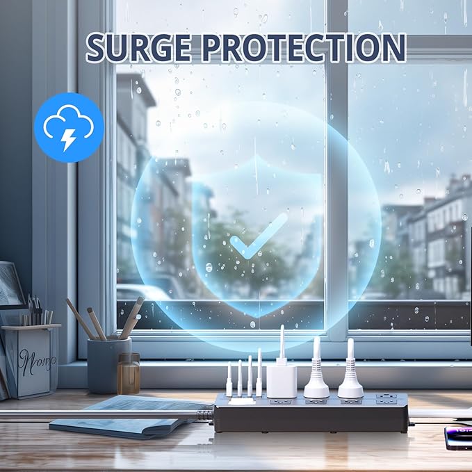 - 【Electric Shockproof Outlet Strip】: Designed for outdoor use,this shockproof strip enhances safety by preventing objects from reaching the inner circuit;Tailored for US plugs;Note: Plug insertion may require extra force due to the protective design.