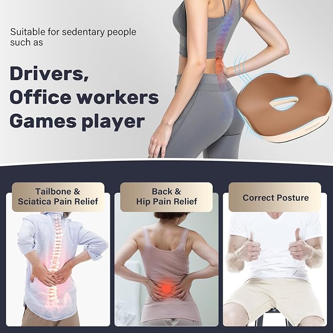 Coverado Car Seat Cushion, Memory Foam Office Chair Cushion for Car, Everlasting Comfort Sciatica & Hip & Tailbone Pain Relief Cushion for Long Sitting Driver Office Worker-Beige