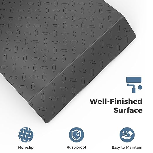 - 56.3" x 20" Carbon Steel Platform: This robust floor scale features a channel steel frame for exceptional stability. The diamond plate surface ensures that animals remain steady during weighing, while the well finish protects scale from dust and rust. The scale is equipped with four adjustable non-slip feet, allowing for easy calibration to accommodate various floor conditions. Additionally, the embedded weighing sensors are designed to keep from debris and rodents.