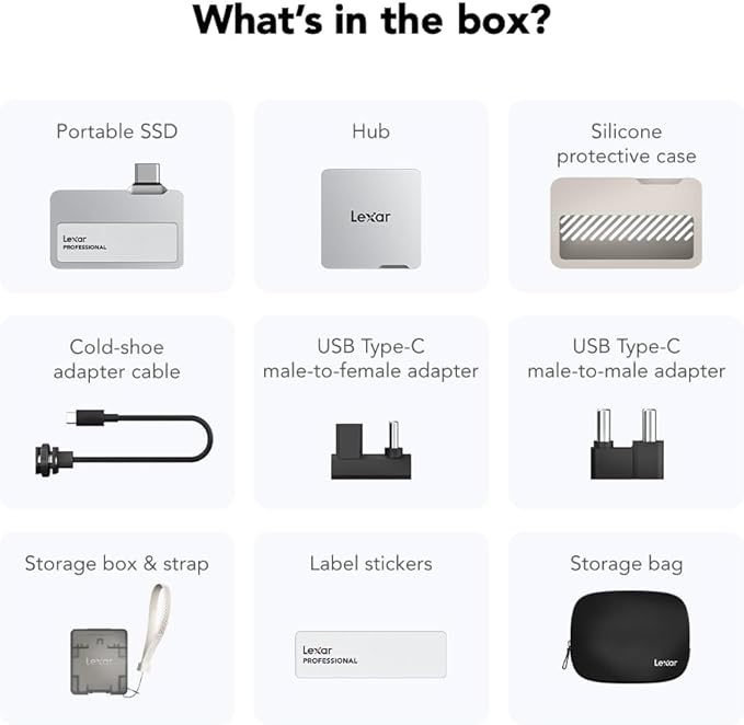 Lexar 2TB Professional Go Portable SSD w/Hub, Supports Apple 4K 60fps ProRes, Up to 1050MB/s, USB 3.2 Gen 2, Rugged, IP65, Ultracompact, Compatible w/iPhone 15/16, External SSD (LSL400S002T-RNSNU)