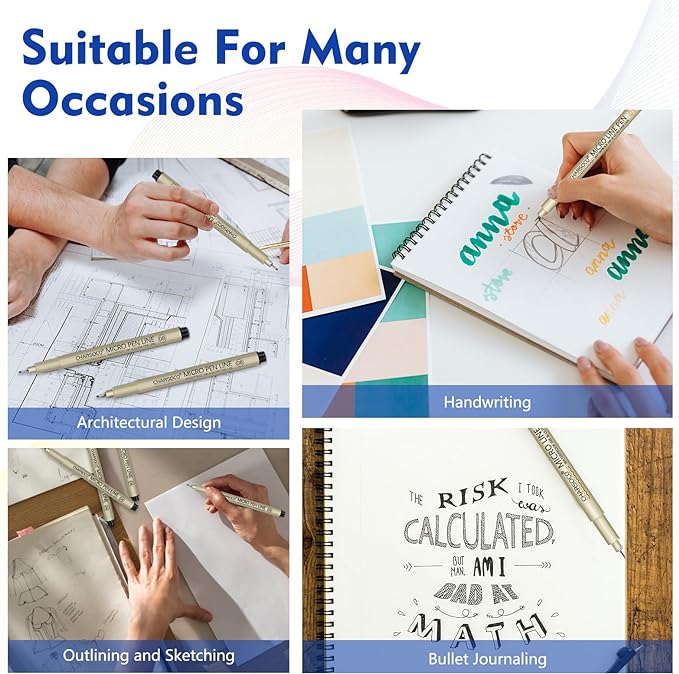 - 【Smooth & Crisp Lines】The fine liner pens feature sturdy stainless steel micro tips, containing safe, high-quality pigment inks that are waterproof and non-toxic. They dry rapidly after use, ensuring precise writing and clear lines. These sketch pens deliver impressively smooth performance across all applications, allowing you to capture and record your creative expressions with ease.