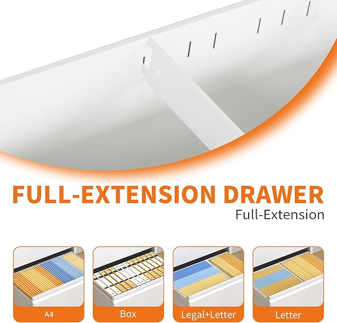 - 【Unique Design】 The steel file cabinet features precision ball bearing full suspension slides, ensuring silent and smooth opening and closing of the drawers. With a full extension drawer design and humanized handles, this locking cabinet offers convenient and effortless functionality.