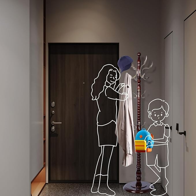 - 【HIGH-GRADE COAT RACKS】This Wooden coat rack is designed in stylish and simple style, made ofenvironmentally friendly high-quality birch material, the bright polished paint and natural wooden make it so generous.