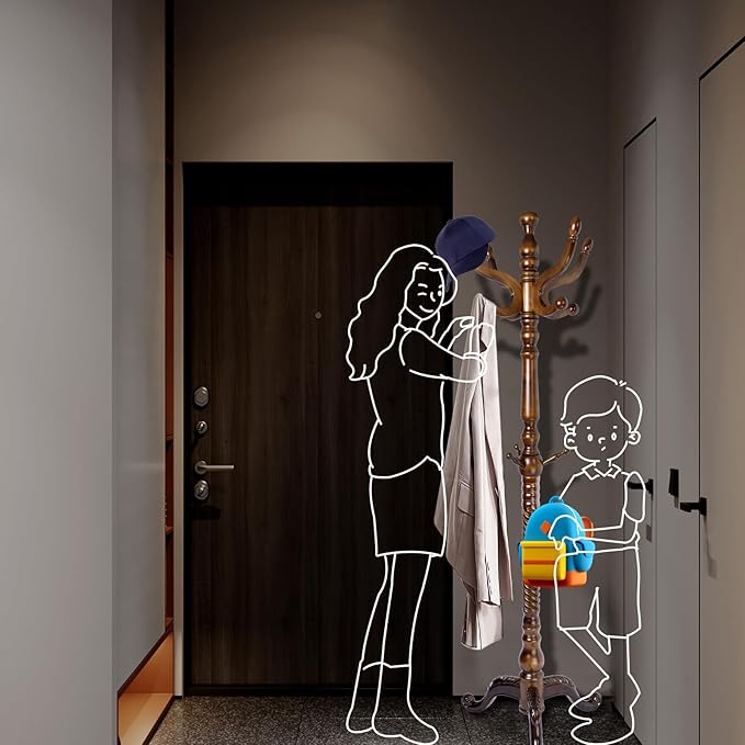 - 【A CLEAN AND TIDY HOME】Do you have the same trouble of disorderly arrangement of things? This freestanding coat rack can make your home look neat.Leave it by the door and use it when you go home or out, easily hanging up your jackets and bags, hat or coat,saving you time to organize.I believe you will love it!