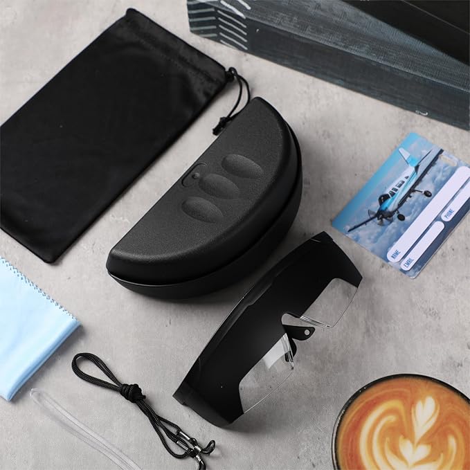 - Adjustable Glasses Temples: these aviation goggles are designed with adjustable glasses temples, providing adaptability across 4 dimensions for different face shapes and lengths; They can be comfortably worn with headphones and come with a lanyard for the neck, ensuring undisturbed and comfortable wearing for pilots at all times