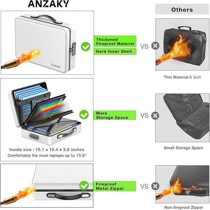 - 【Trusted ANZAKY Quality】With ANZAKY, you're not just buying a fireproof safe case; you're investing in peace of mind. If you need anything, please find us through Amazon's message center and we will always provide you with satisfactory service.