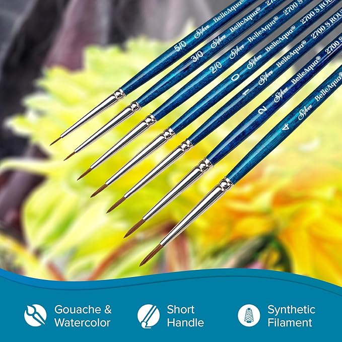 - BelleAqua: Our BelleAqua brushes were created for watercolor artists and skilled hobbyists. Each BelleAqua water color brush is soft enough to add color without disturbing previous layers but firm enough to lift color when needed. The BelleAqua is our most absorbent series, meaning it carries more color effortlessly from your watercolor palette to your painting surface so you do not have to reload often.