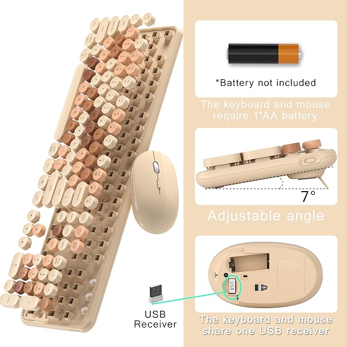 - Great Gift for All Ages – With its colorful design and retro aesthetic, this keyboard and mouse combo is a great gift for students, gamers, professionals, or anyone who wants to add a creative touch to their workspace