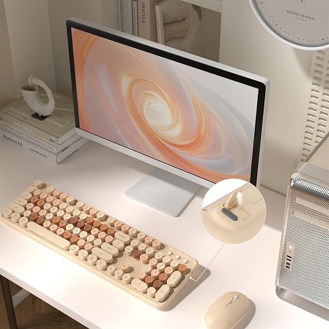 - Retro Colorful Design with Round Keycaps – Brighten up your workspace with this colorful wireless keyboard and mouse combo. The typewriter-style round keycaps offer a nostalgic yet modern feel, making it a perfect fit for home or office use