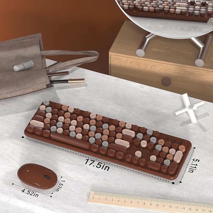 - Retro Colorful Design with Round Keycaps – Brighten up your workspace with this colorful wireless keyboard and mouse combo. The typewriter-style round keycaps offer a nostalgic yet modern feel, making it a perfect fit for home or office use