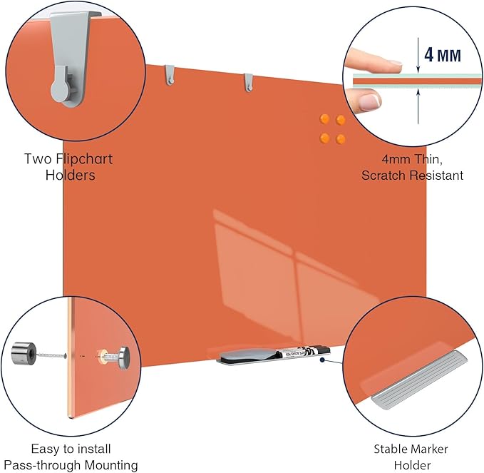 - PREMIUM GLASS WHITEBOARD - 36 x 24 inches glass whiteboard comes with smooth, strong and durable tempered glass surface, which is resists scratches and dents. This premium glass allows you to write, erase and rewrite on a clean surface every time.