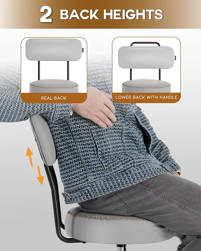 - Versatile Design: The backrest adjusts to two heights and can be removed. Wheels can be swapped for rubber foot caps, turning it into a traditional shop stool.