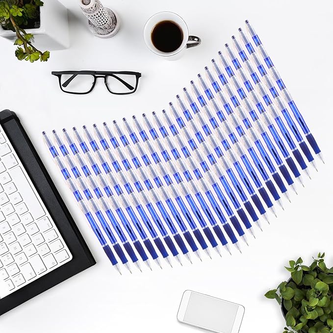 - 【Smooth writing experience】: The Retractable design ensures that these ballpoint pens have blue ink ready to use at any time. The blue ink color produces clear text, making it easy to read. The pen tip slides effortlessly on paper, providing a smooth and enjoyable writing experience that will make any task more comfortable.