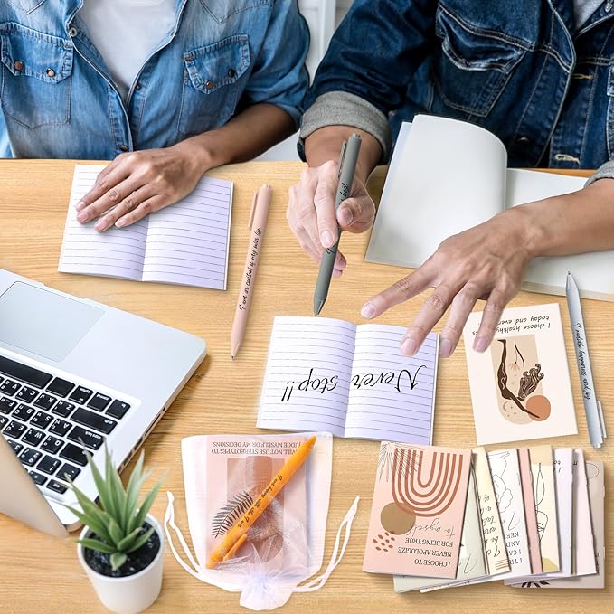 - Package Include: you will receive 24 pcs self care notebooks with 24 inspirational pens and 24 pcs small white bags, with this set, you can spread the joy of gratitude and positivity to multiple recipients, making it an ideal choice for bulk gifting