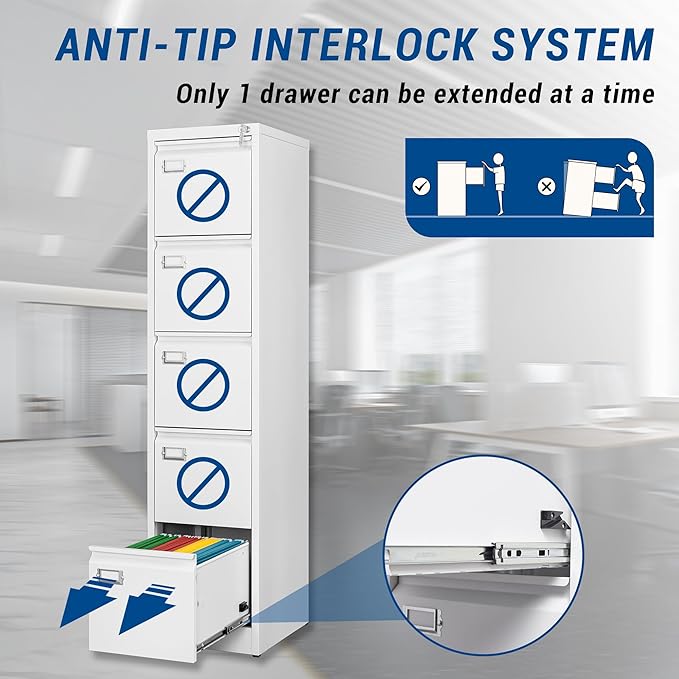 - EASY TO OPEN AND CLOSE - Compared with other file cabinets of the same type, we have installed a pair of metal slide rails for each drawer, even if the whole drawer is full of heavy files, you can still open and close easily with the help of metal slide rails drawer.