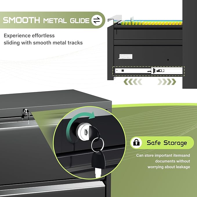 - 【Reliable Locking system】 The office file cabinets are equipped with two keys and an interlocking system that can lock all drawers simultaneously for your daily use and keep your important documents safe even when you are out of the office.