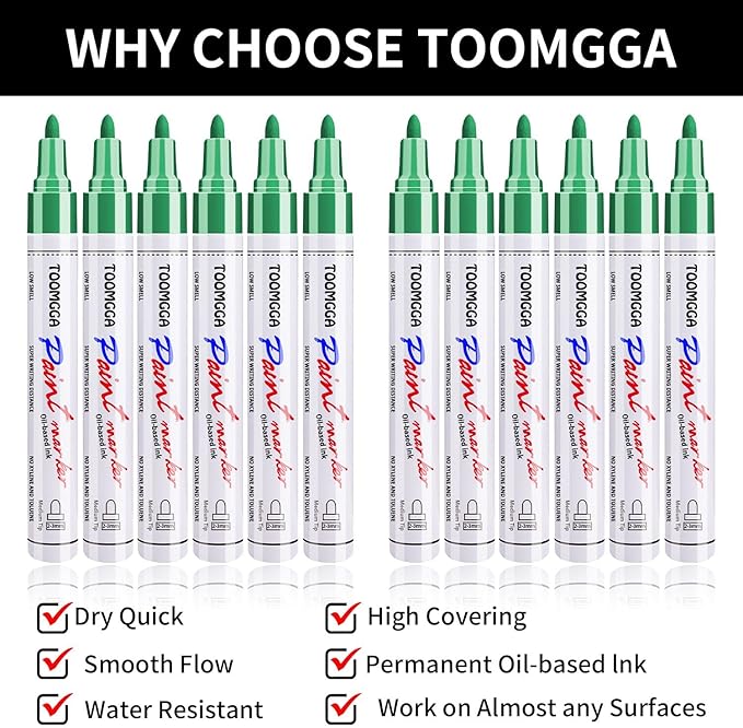 - Premium Quality: Each Green paint pens paint markers is independently tested, selected, and packaged in individual heat shrink film. Before use: Face tip upright,push against finger. Re-cap and shake. Press tip on surface several times