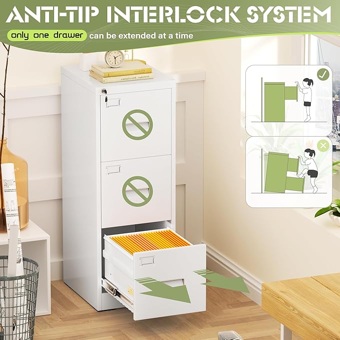 - 【High security】Three-drawer file cabinet with Lock is equipped with a built-in interlocking system to ensure drawer security. One locks with two keys ensures that your files are safe and easy to manage. The cabinet with drawers can be locked into three drawers at the same time with a lock, which is smooth and easy to operate.