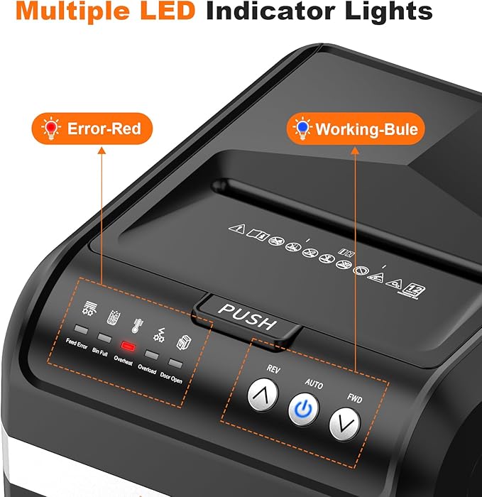 - Meet Different Shredding Needs: Cards, Clips and Staples can also be easily destroyed (Manual Inlet Only), while can shred up to 12 sheets of paper. 30-minute non-stop running mode can meet the needs of the user's business, to protect the privacy of the user