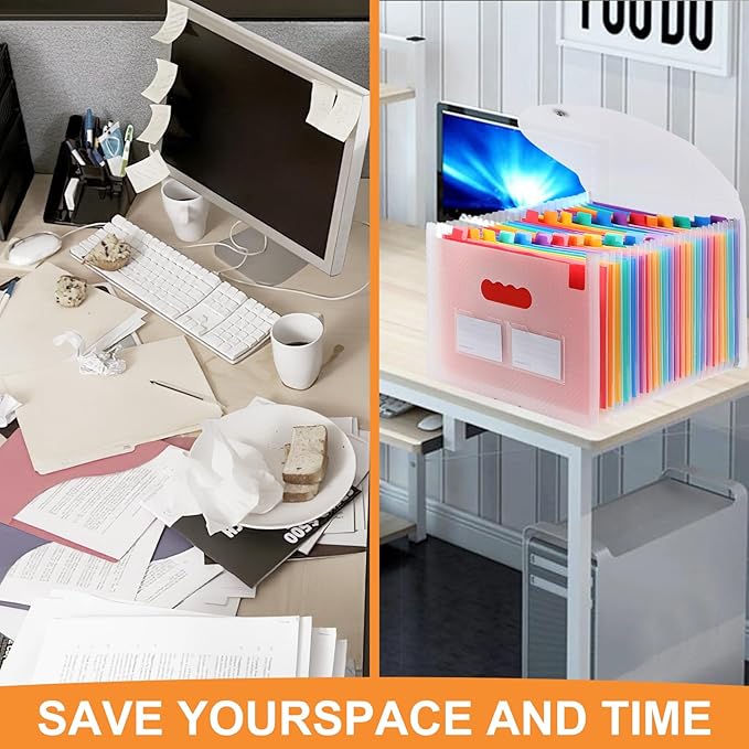 - Perfect Document Organization: 24 pockets, can store more than 4000 paper documents, suitable for A4/ letter size paper, suitable for storing documents in daily life. It stands on the table by itself and is not easy to tip over. Extended File Organization is a perfect file organization for home, office, school and travel