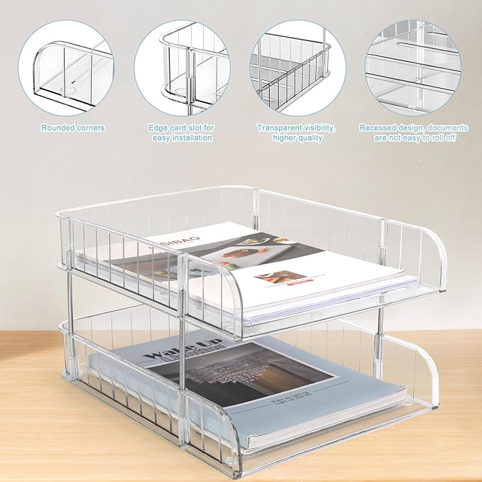 - Spacesaving Letter Tray Organizer: This letter tray organizer has open handles for easy access to your office supplies and files. It not only keeps your desk neat, organized and space-saving, but also helps you to solve the problem of cluttered desk and impossible to find files, thus improving your work efficiency