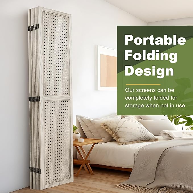 - Premium Natural Wood Construction:Crafted from high-quality natural wood, the pegboard room divider is comfortable, breathable, and eco-friendly. Its durable construction ensures resistance to wear and deformation, making it a reliable and long-lasting choice for everyday use and display purposes.