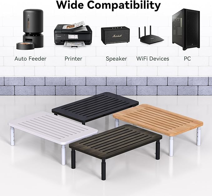 - Wide Compatibility: Our monitor stand riser is designed to support monitors, laptops, printers, gaming consoles, autofeeder, and more up to 66 lbs. Anti-slip rubber pads ensure stability and surface protection, while the sleek design complements any workspace