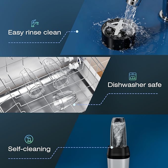 - No complicated buttons or settings, just load your ingredients, press clockwise to lock, it's start blending. (𝐍𝐨𝐭 𝐬𝐮𝐩𝐩𝐨𝐫𝐭 𝐩𝐮𝐥𝐬𝐞 𝐮𝐬𝐞, 𝐩𝐫𝐞𝐬𝐬 𝐜𝐥𝐨𝐜𝐤𝐰𝐢𝐬𝐞 𝐭𝐨 𝐥𝐨𝐜𝐤 𝐭𝐨 𝐮𝐬𝐞) Press and twist counterclockwise to remove the cup. Whether you’re preparing drinks, dips, sauces, Nahida Portable Blender makes everything quick and effortless. When you're done, simply rinse the cups under water for easy cleanup. Motor Base Size: 4.8"W x 7.7"H, Package Weight: 6.5lbs