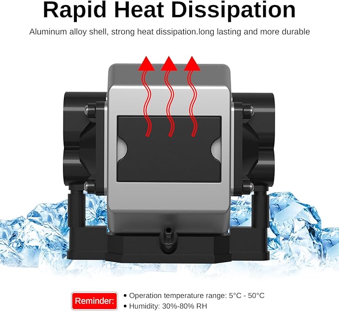 - Durable & Stable: This air pump is made of a aluminum shell, which is easy to maintain. It is fully compatible with the LASER TREE laser module. There are 4 rubber feet to reduce noise and vibration in operation. High stability design to maintain stable airflow output even after a long working time. Turn on the air pump after connecting the air hose, the noise does not exceed 40 dB.