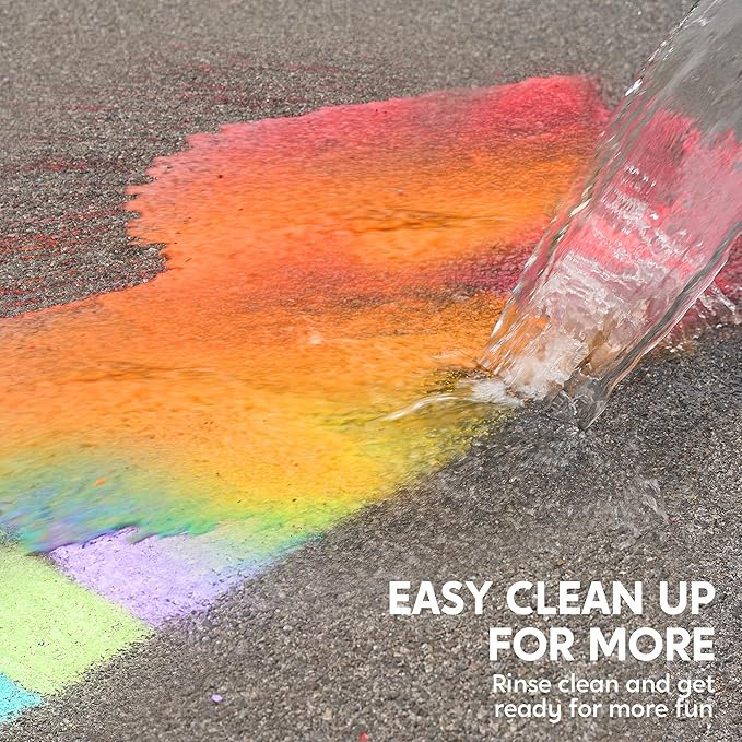 - Washable: Enjoy a mess-free experience with washable chalk that can easily be cleaned off sidewalks, chalkboards, and other surfaces, ensuring a stain-free playtime for kids and adults alike.